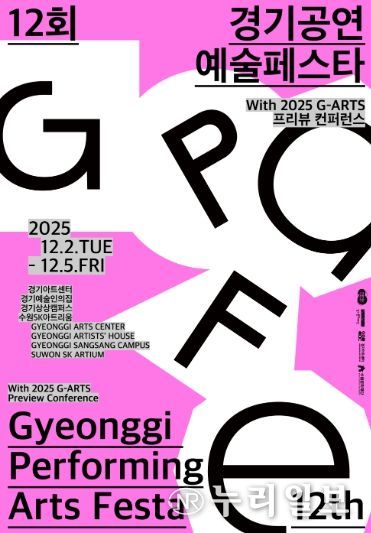 (누리일보) 경기문화재단은 경기도 수원 일대에서 제12회 경기공연예술페스타를 개최한다. 페스타는 2025년 12월 2일부터 5일까지 경기 예술인의 집, 경기아트센터, 경기상상캠퍼스, 수원SK아트리움 등에서 진행되며, 베스트콜렉션, 쇼케이스 데이, 공동 창·제작 쇼케이스, 피치세션, 토크세션, 워크숍 등 다양한 프로그램을 통해 경기 공연예술 생태계의 흐름과 성과를 한눈에 보여줄 예정이다. 또한 경기아트센터 주최 ‘2025 G-ARTS 프리뷰 컨퍼런스’가 동시 개최되며, 보다 풍성한 전문 교류의 장을 마련한다.