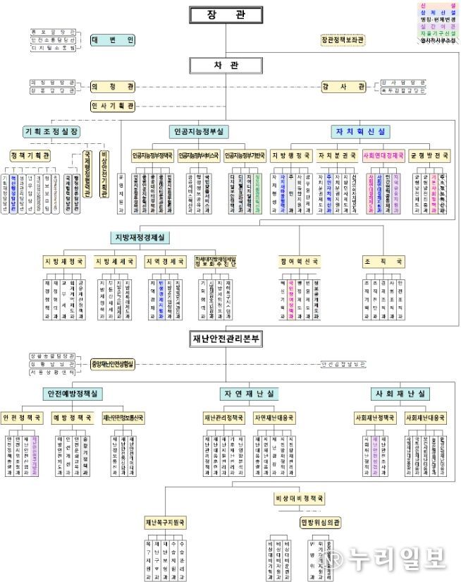 (누리일보) 행정안전부는 인공지능(AI), 지방정부 및 국민안전 정책 수준을 한단계 더 높이고, 국정과제 추진동력을 강화하기 위한 조직개편을 실시했다고 밝혔다.
