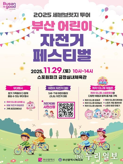 (누리일보) 부산시는 오는 11월 29일 오전 11시 스포원파크 금정실내체육관에서 2025 세븐브릿지 투어 연계 '부산 어린이 자전거 페스티벌'을 개최한다고 밝혔다.