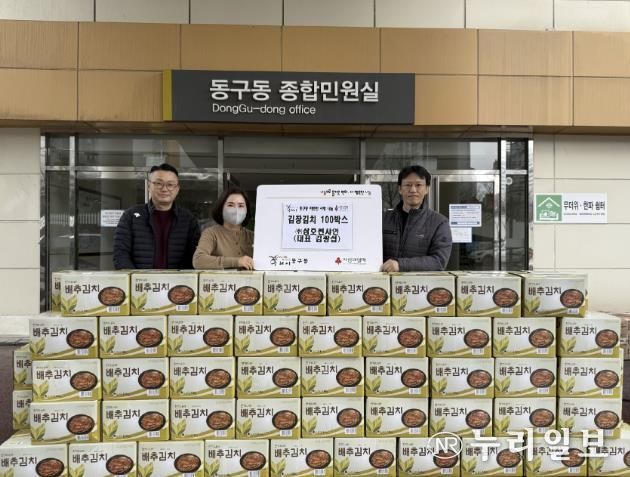 (누리일보) 구리시 동구동 행정복지센터는 지난 25일 동구동 행정복지센터에서 ㈜삼호썬샤인으로부터 겨울철 취약계층을 위한 김장 김치 100박스를 기탁받았다고 밝혔다.