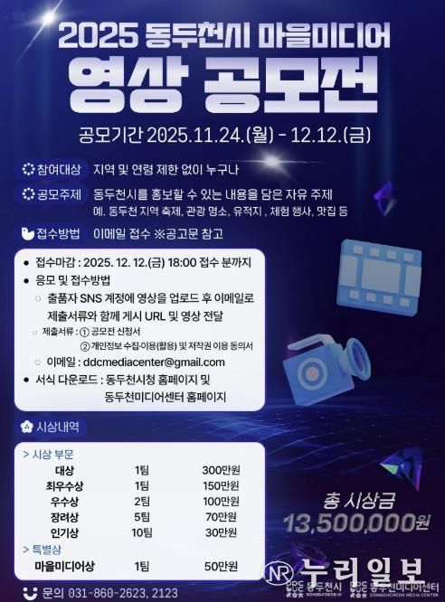 (누리일보) 동두천시는 지역 곳곳의 숨은 매력을 발굴하고 시민 참여형 홍보콘텐츠를 확대하기 위해 ‘2025년 동두천시 마을미디어 영상 공모전’을 개최한다.