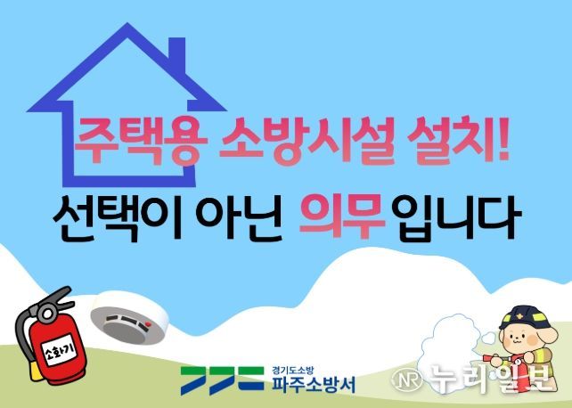 김명찬 파주소방서장은 “주택용 소방시설은 불이 났을 때 우리 가족을 가장 먼저 지켜주는 최소한의 안전장치”라며 “파주소방서는 앞으로도 모든 가정에 주택용 소방시설이 보급·관리될 수 있도록 지속적으로 홍보하고, 시민 안전을 위해 최선을 다하겠다”고 말했다.