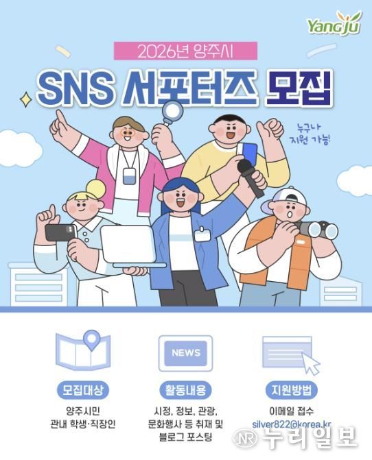 (누리일보) 양주시가 시민과 소통하며 시정 소식과 지역의 숨은 매력을 널리 알릴 '2026년 양주시 SNS 서포터즈'를 오는 12월 1일부터 10일까지 10일간 모집한다.