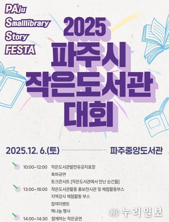 (누리일보) 파주시 중앙도서관은 오는 6일, 한 해 동안 작은도서관의 다양한 활동을 시민들과 함께 공유하고 운영자들을 격려하기 위한 녩파주시 작은도서관대회 패스 페스타(PASS FESTA)’를 개최한다고 밝혔다.