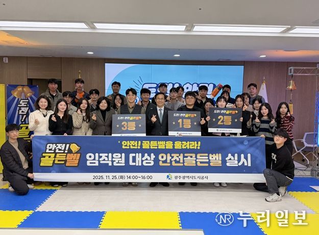 (누리일보) 광주도시공사(사장 김승남)는 지난 25일, 본사 9층 대회의실에서 임직원 50여 명이 참여한 가운데 ‘임직원 대상 안전골든벨 퀴즈대회’를 개최했다고 밝혔다.