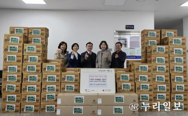 (누리일보) 구리시 인창동 행정복지센터는 11월 27일, 구리 숲과나무교회로부터 지역 내 어려운 이웃을 위한 컵라면 100상자와 겨울 장갑 200켤레를 기탁받았다고 밝혔다.
