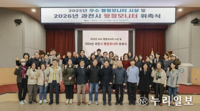 (누리일보) 과천시는 지난 27일 시청 대강당에서 ‘2026년 행정모니터 위촉식’ 및 ‘2025년 행정모니터 활동 우수자 시상식’을 개최했다.