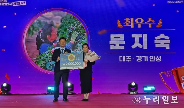 (누리일보) 농림축산식품부 주최, 한국과수농협연합회 주관으로 하는 ‘2025 대한민국 과일산업대전 대표과일선발대회’에서 안성시가 2023년부터 대추부문에서 최우수상, 우수상을 수상하여 3년 연속 대추부문 최고자리에 올랐다. 수상자로 문지숙 대표가 최우수상(농림축산식품부장관상)으로 선정됐고, 조재곤 대표가 우수상(산림청장상)으로 선정됐다.