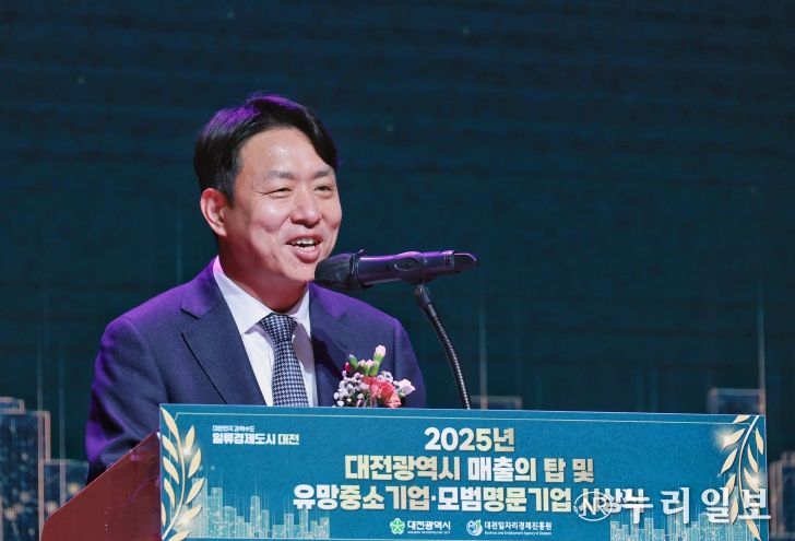 (누리일보) 대전시는 3일 유성구 도룡동 대전컨벤션센터 제1전시관에서‘2025년 매출의 탑 및 유망중소기업‧모범명문기업 시상식’을 개최했다.