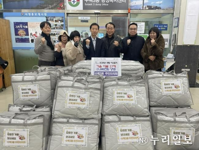 (누리일보) 구리시 수택3동 주민자치회는 지난 3일, 겨울철 한파에 대비하여 관내 저소득 어르신 가정 27세대에 겨울 이불 27채(약 108만원 상당)를 전달했다고 밝혔다.