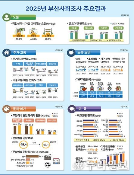 (누리일보) 부산시는 부산시민의 삶의 질 향상을 위해 실시한 '2025 부산사회조사' 결과를 오늘(5일) 공표했다.