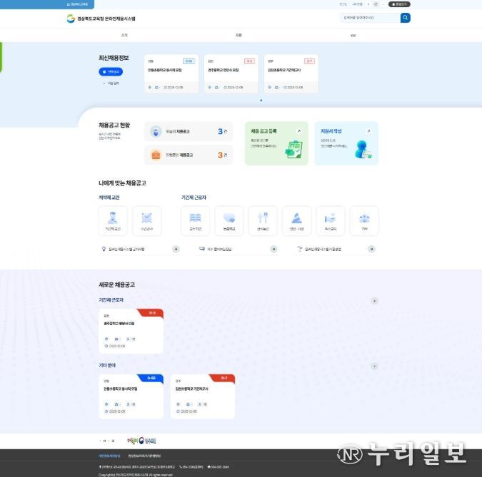 (누리일보) 경북교육청은 학교지원센터의 복잡한 인력 채용 업무를 전산화․표준화한 ‘(가칭)경북교육 인력 채용시스템’을 구축하고, 본격 운영에 들어갈 예정이라고 9일 밝혔다.