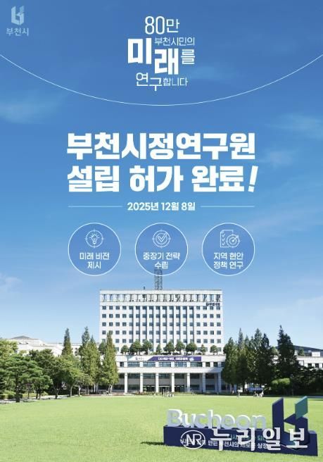 (누리일보) 부천시는 지난 8일 행정안전부로부터 부천시정연구원 설립 허가를 받았다고 9일 밝혔다.