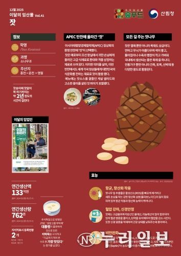 김용진 산림청 사유림경영소득과 과장은 “12월을 맞아 제철을 맞은 국산 잣 소비가 확대되어 임업인의 소득 증대와 임산물 가치 확산으로 이어지길 기대한다.”며, “앞으로도 다양한 임산물의 우수성을 지속적으로 알릴 계획이다.”고 밝혔다.