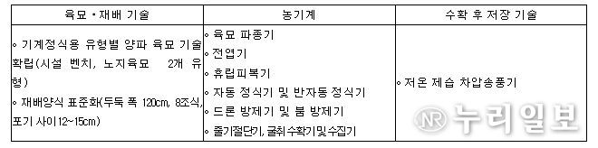 한편, 농촌진흥청은 농촌 인구 감소와 고령화로 일손 구하기가 힘든 현장의 어려움을 해결하고자 기계 개발 연구에 재배 기술, 저장 등 다른 기술을 연계한 밭작물 전 과정 기계화를 추진하고 있다.