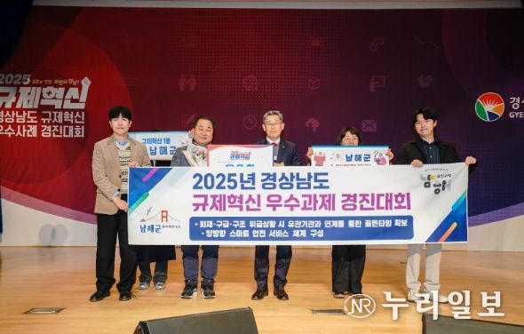 (누리일보) 경상남도는 19일 도청 본관 4층 대회의실에서 ‘2025 경상남도 규제혁신 우수사례 경진대회’를 개최했다. 이번 경진대회는 규제혁신을 통해 도민이 체감할 수 있는 변화를 이끌어낸 우수사례를 공유하고, 향후 추진 방향을 모색하기 위해 마련됐다.