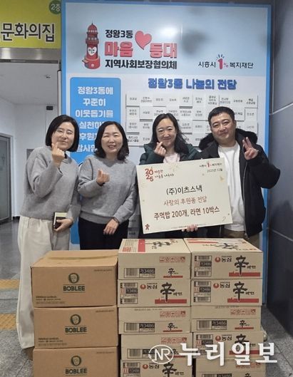 (누리일보) ㈜이츠스낵은 지난 12월 19일 정왕3동 지역사회보장협의체를 찾아 저소득 결식 우려 가구를 위한 주먹밥 200개와 라면 10상자를 전달했다.