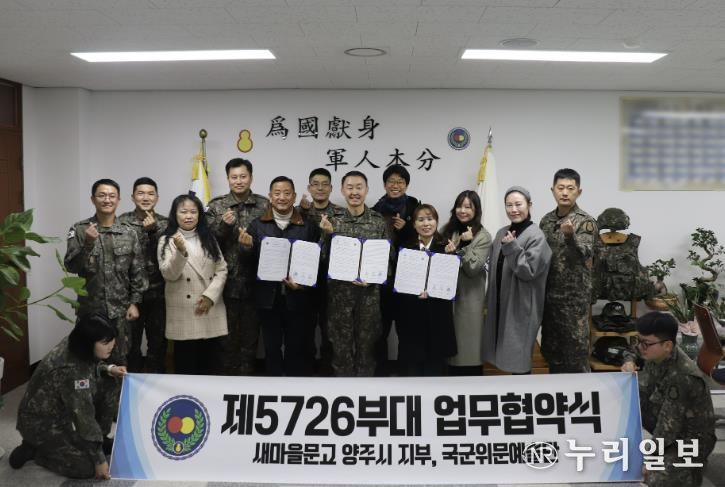 (누리일보) 새마을문고 양주시지부는 지난 12월 19일, 육군 제5726부대에서 군 장병들의 독서문화 확산과 인문학적 소양 증진을 위한 업무협약(MOU)을 체결했다고 밝혔다.
