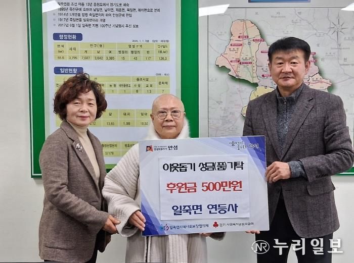 (누리일보) 일죽면 행정복지센터는 지난 19일, 안성시 일죽면 화봉리에 위치한 연등사에서 저출산 가구 지원을 위해 500만 원의 기부금을 전달했다. 이번 기부는 지역 내 저출산 문제 해결과 아이 양육에 어려움을 겪는 가정을 돕기 위한 뜻깊은 자리로 마련됐다.