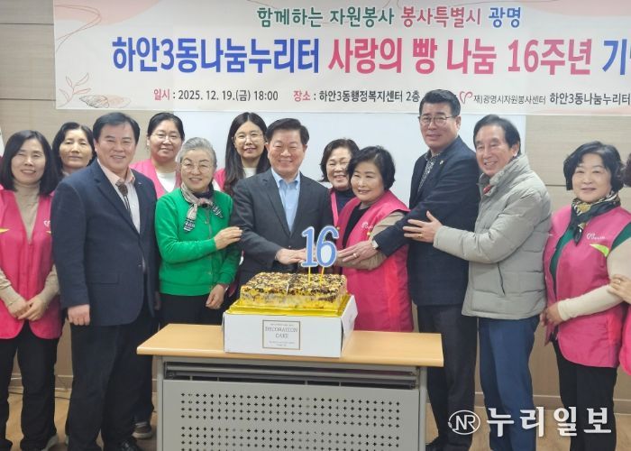 (누리일보) 광명시 하안3동 나눔누리터는 광명시자원봉사센터, 하안3동 행정복지센터와 함께 지난 19일 하안3동 행정복지센터 2층 회의실에서 ‘사랑의 빵 나눔’ 16주년 기념식을 개최했다.