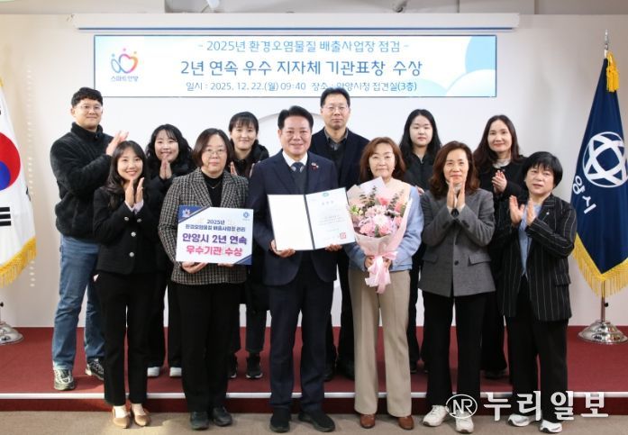 (누리일보) 안양시는 경기도가 주관하는 ‘2025년 환경오염물질 배출사업장 관리평가’에서 지난해에 이어 2년 연속 우수기관에 선정되고, 경기도지사 표창을 받았다고 22일 밝혔다.