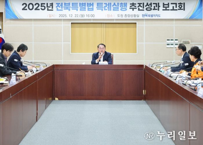 전북도는 22일 김종훈 경제부지사 주재로 ‘2025년 전북특별법 특례 실행 추진성과 보고회’를 열고, 특별법 시행 이후 1년간의 추진 성과를 종합 점검하고 향후 추진 방향을 논의했다.