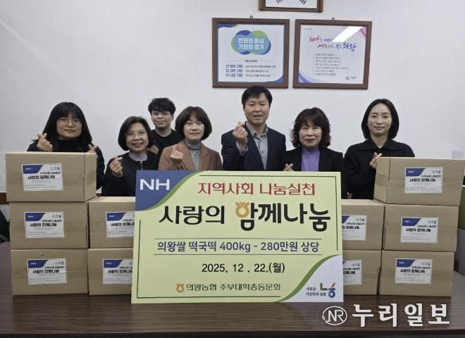 (누리일보) 의왕농협 주부대학총동문회는 12월 22일, 회원들의 뜻을 모아 떡국떡 400kg(280만원 상당)을 부곡동주민센터에 기탁하며 어려운 이웃을 위한 나눔을 실천했다.