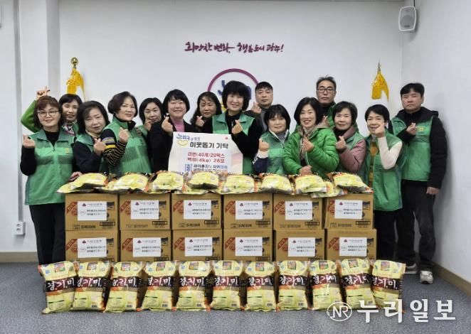 이날 기탁된 물품은 새마을회 회원들이 탄소중립 실천의 하나로 진행한 헌 옷 수거 판매 대금과 회원들의 자발적인 참여로 마련한 것으로 총 120만 원 상당의 백미와 라면이다. 기탁 물품은 겨울철 식생활에 어려움을 겪는 지역 내 취약계층에게 전달될 예정이다.