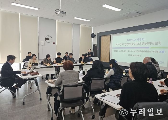 (누리일보) 남양주시는 22일 남양주사회적경제지원센터에서 ‘2025년 제3차 남양주시 양성평등기금운용심의위원회 및 성과공유회’를 개최하고, 올해 추진한 양성평등기금 지원사업의 성과를 공유하며 2026년도 사업방향을 논의했다고 밝혔다.