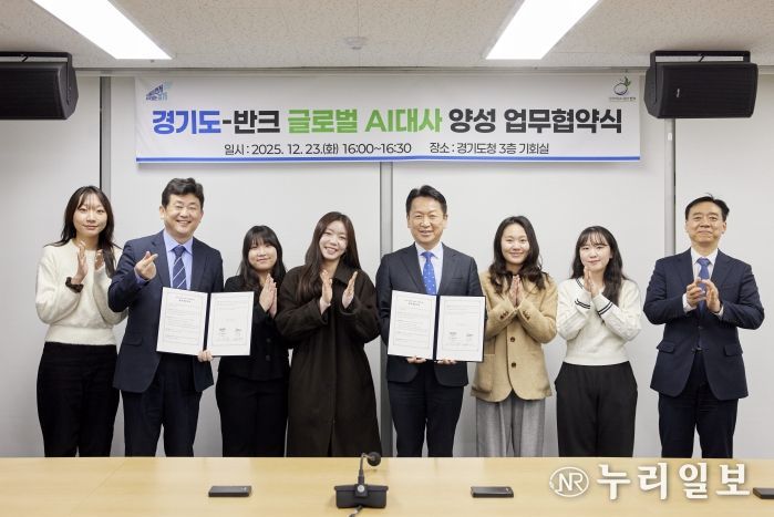 경기도는 23일 경기도청에서 반크와 이런 내용을 담은 ‘글로벌 AI대사’ 양성을 위한 업무협약을 체결하고, 생성형 인공지능(AI) 오류 대응을 위한 민관 협력체계를 구축했다. 협약식에는 고영인 경기도 경제부지사와 박기태 반크 단장을 비롯해 양 기관 관계자 10여 명이 참석했다.