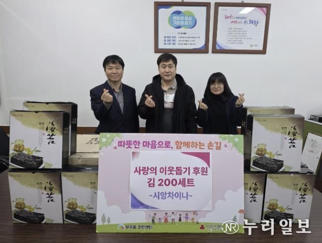 (누리일보) 의왕시 부곡동에 위치한 중식당 시앙차이나가 12월 23일 부곡동주민센터를 방문해 관내 취약계층에게 전달해달라며 조미김 200상자를 기탁했다.