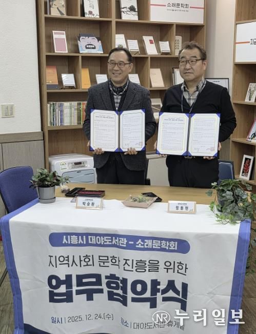 (누리일보) 시흥시 대야도서관은 지역 문학단체인 소래문학회와 지난 12월 24일, 대야도서관 휴게실에서 지역 문학 진흥 및 독서문화 확산을 위한 업무협약을 체결했다.