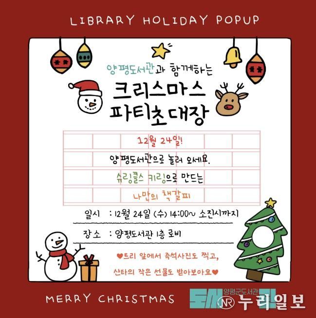 (누리일보) 양평군은 지난 24일 양평도서관에서 진행된 ‘양평도서관 홀리데이 팝업! 슈링클스 책갈피·키링’ 체험행사가 성황리에 마무리됐다고 밝혔다.