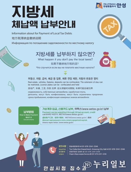 (누리일보) 안성시는 외국인 근로자의 지방세 체납액 징수를 위해 외국인 전용보험 압류를 추진한다고 밝혔다.