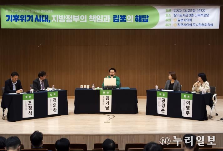 (누리일보) 김포시의회 도시환경위원회는 12월 23일 장기도서관에서 ‘기후위기 시대, 지방정부의 책임과 김포의 해답’을 주제로 제17회 정책토론회를 열었다.