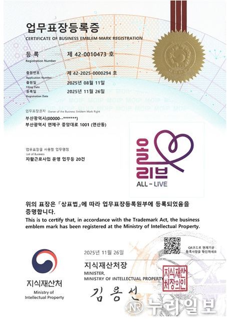 (누리일보) 부산시는 지자체 최초로 시 대표 자활정책 브랜드인 '올리브(ALL-LIVE)'를 특허청에 상표로 등록했다고 밝혔다.