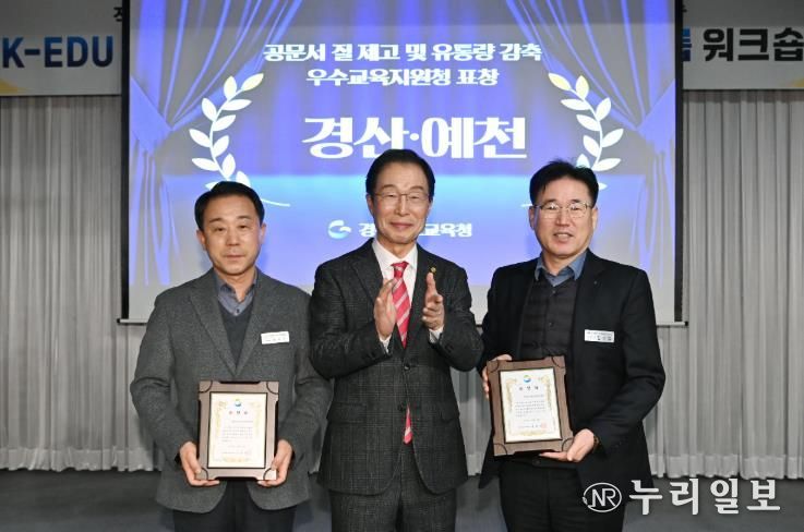 (누리일보) 경북교육청은 2025년 학교로 발송하는 공문서의 유통량 감축과 질적 개선에 이바지한 우수교육지원청으로 경산교육지원청과 예천교육지원청을 선정하고 교육감 표창을 수여했다고 30일 밝혔다.