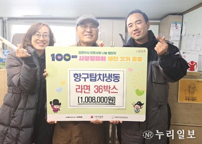 (누리일보) 의정부시 장암동주민센터는 12월 29일 항구탑차냉동이 라면 36상자(100만 원 상당)를 기부하며 ‘100일간 사랑릴레이 배턴 잇기’에 동참했다고 밝혔다.
