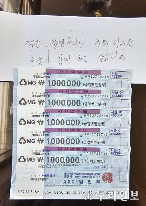 청평면의 ‘얼굴 없는 천사’로 알려진 이 기부자는 2016년부터 현재까지 10년째 익명 기부를 이어오며 매년 빠짐없이 성금을 전달해 오고 있다. 익명의 기부자가 전달한 봉투에는 “작은 물질이지만 지역의 어려운 이웃과 함께 하고 싶습니다.”라는 내용과 함께 100만 원권 수표 5장이 담겨 있었다.