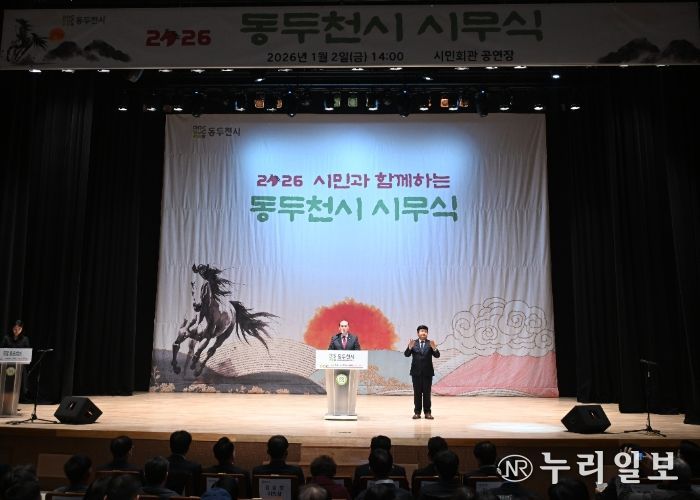 (누리일보) 동두천시는 2026년 병오년(丙午年) 새해를 맞아 1월 2일 오후 2시 시민회관 공연장에서 시민과 함께하는 ‘2026년 시무식’을 개최했다.