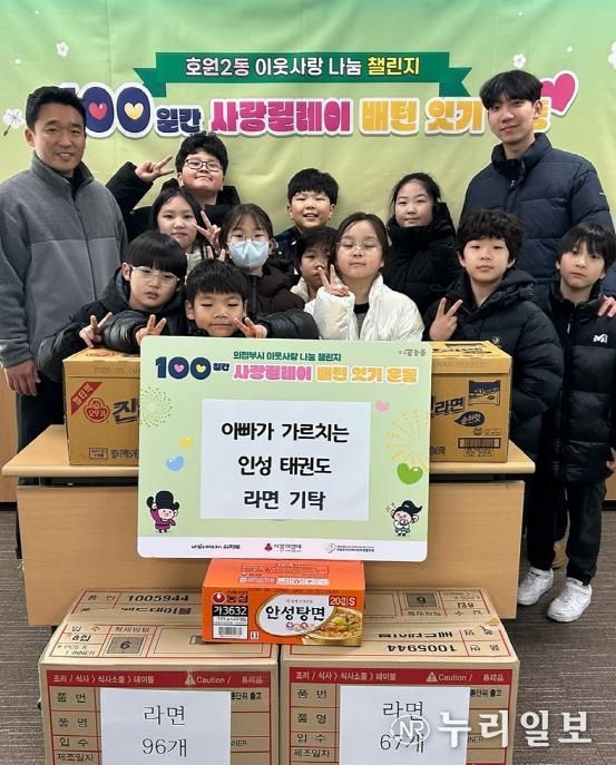 (누리일보) 의정부시 호원2동주민센터는 12월 31일 아빠가 가르치는 인성태권도 수련생들이 정성을 모아 취약계층을 돕기 위한 라면 310개를 기탁했다고 전했다.