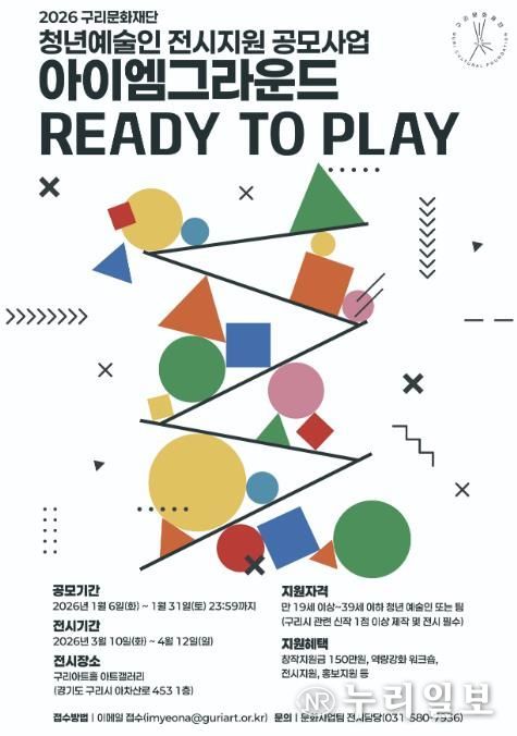 (누리일보) (재)구리문화재단은 청년 예술인의 도약과 성장을 지원하기 위한 청년 정책 플랫폼 사업의 일환으로, 2026년 청년 예술인 전시지원 공모사업 '아이엠 그라운드, Ready to Play'에 참여할 예술인을 1월 6일부터 1월 31일까지 모집한다.