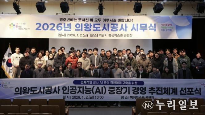 (누리일보) 의왕도시공사가 1월 2일, 평생학습관 공연장에서 개최된 시무식에서 인공지능(AI) 경영 문화 확산을 위한 ‘인공지능 중장기 경영 추진체계 선포식’을 개최했다.