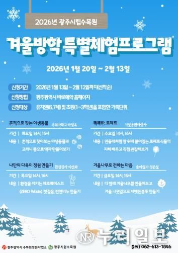 (누리일보) 광주광역시 시립수목원은 어린이를 위한 ‘2026년 겨울방학 체험 프로그램’ 참가자 640명을 오는 13일 오전 10시부터 선착순 모집한다.