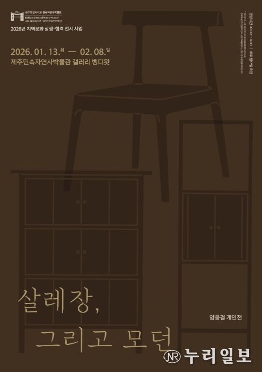 (누리일보) 제주민속자연사박물관은 ‘지역문화 상생·협력 전시 사업’의 일환으로 1월 13일부터 2월 8일까지 갤러리 벵디왓에서 양웅걸 개인전 '살레장, 그리고 모던'을 개최한다.