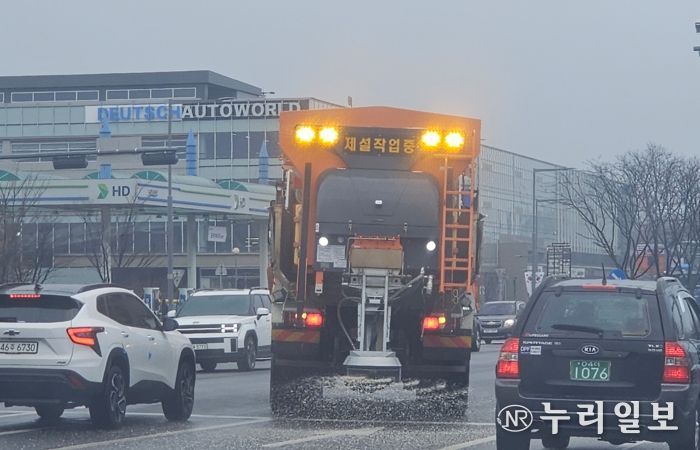 (누리일보) 수원시가 10일 선제적으로 제설제를 살포해 블랙아이스(도로결빙)에 대비했다.