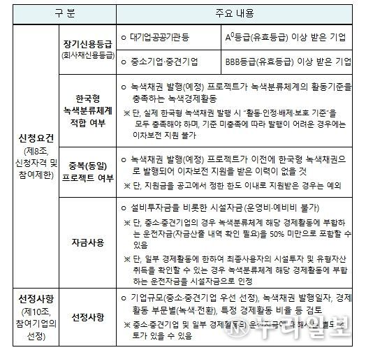 이번 지원사업은 지난해(2025년) 12월 말에 개정된 한국형 녹색분류체계를 반영하여 차세대 저탄소 기술을 폭넓게 지원하고, 자금 지원범위도 넓혀 기업의 수요에 부응하는 탈탄소 투자를 촉진한다.