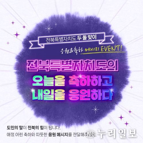(누리일보) 전북특별자치도는 출범 2주년을 맞아 도민이 직접 참여하는 '도민 참여 축하·응원 메시지 이벤트'를 1월 12일부터 23일까지 운영한다.