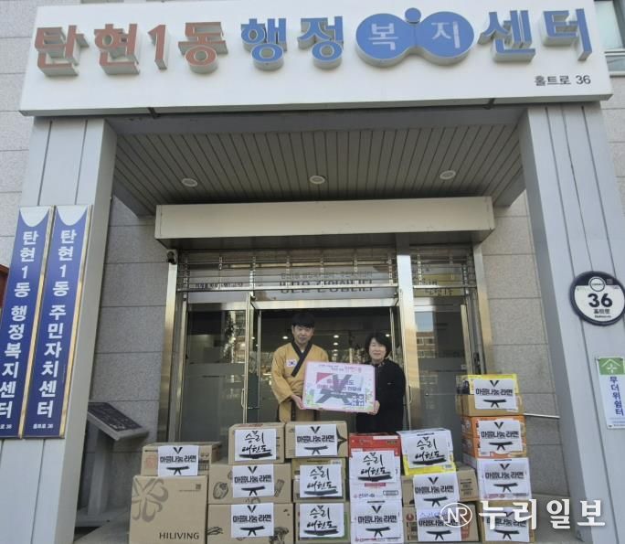 (누리일보) 고양특례시 일산서구 탄현1동은 지난 9일 승리태권도로부터 지역 내 어려운 이웃을 돕기 위한‘마음나눔 라면’ 933개를 기부받았다고 밝혔다.