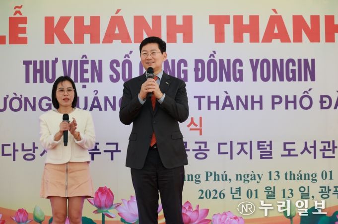 (누리일보) 이상일 용인특례시장은 13일(현지 시각) 다낭시 광푸구에 위치한 사단법인 국제연꽃마을 복지타운에서 용인특례시가 공적개발원조(ODA) 사업으로 조성한 ‘다낭시 광푸구 용인 공공 디지털도서관’ 준공식에 참석해 축하의 뜻을 전했다.